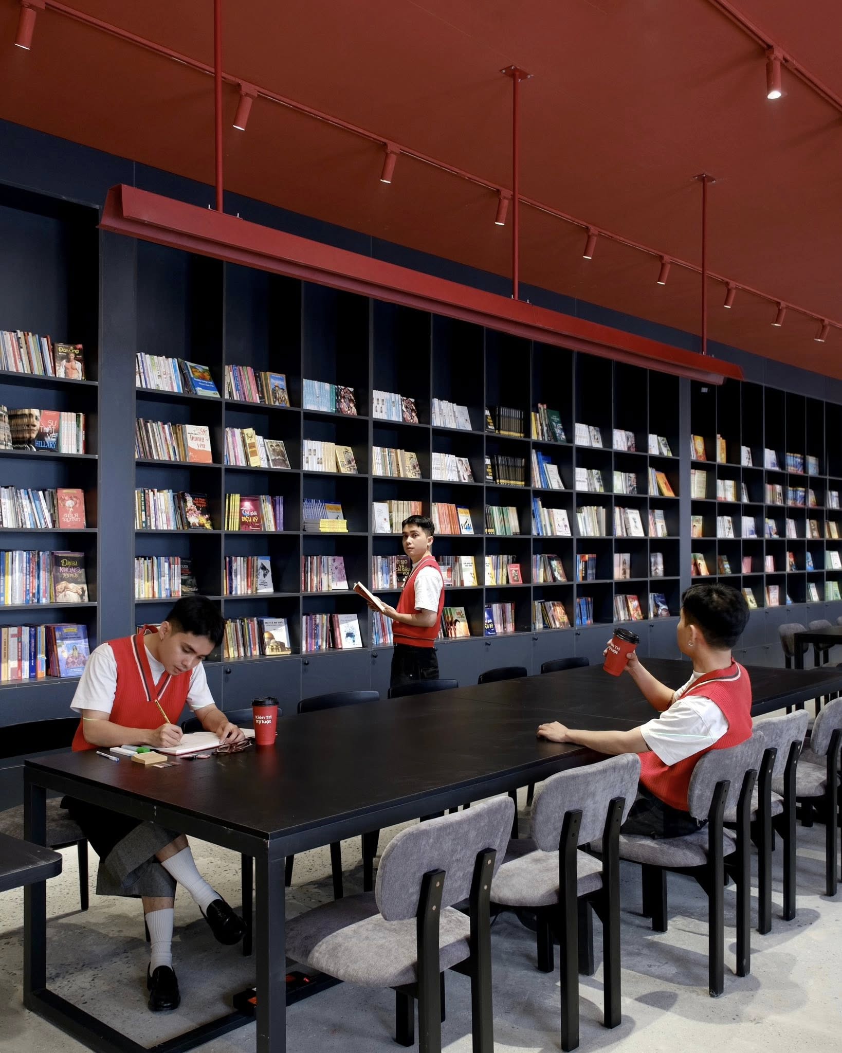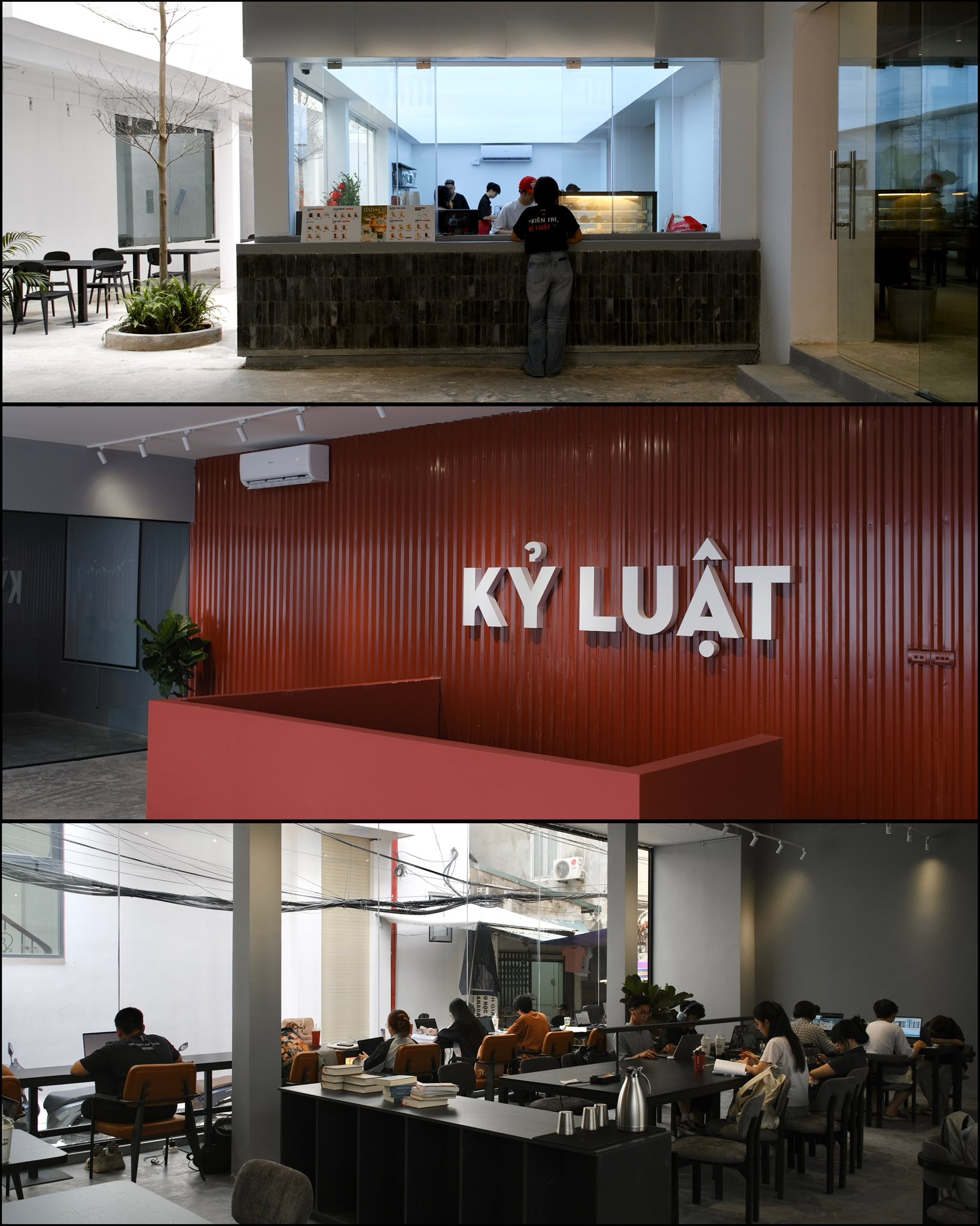 Không gian quán được thiết kế theo phong cách hiện đại pha chút industrial, với:
