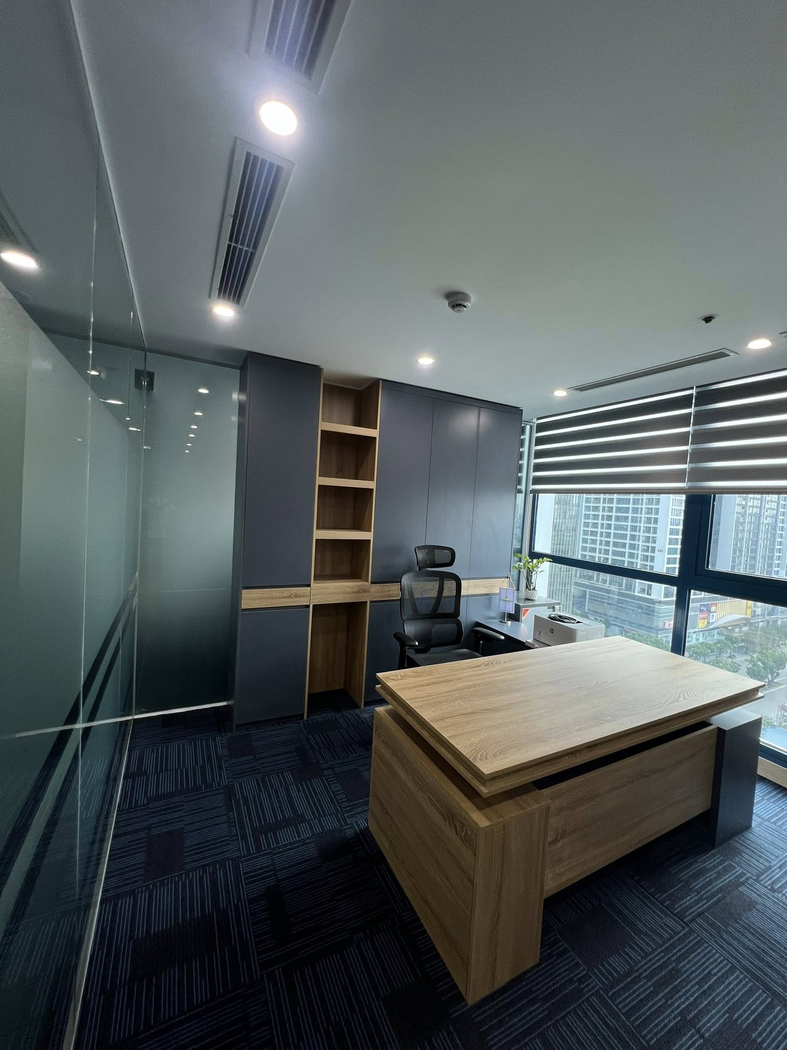 Thi công nội thất văn phòng: bàn ghế, tủ hồ sơ, quầy lễ tân, phòng họp… theo bản vẽ 3D.
